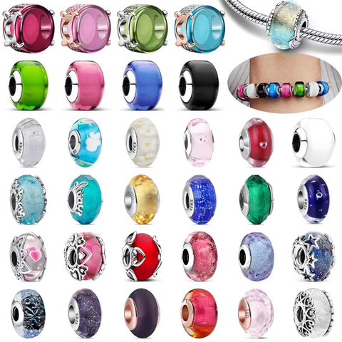 925 plata esterlina azul verde rosa Rojo Negro Blanco púrpura cuentas de cristal de Murano ajuste Original Pantaro encantos pulsera mujer joyería
